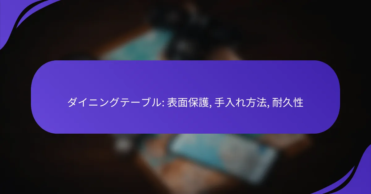 ダイニングテーブルの表面保護は、傷や汚れから守るために重要です。適切な手入れ方法を実践することで、テーブルの美しさと耐久性を保つことができます。また、耐久性は材質や仕上げによって異なり、高い耐久性を持つテーブルは長期間使用可能です。 ダイニングテーブルの表面保護とは何ですか? ダイニングテーブルの表面保護は、テーブルの表面を傷や汚れから守るための手段です。適切な保護を施すことで、テーブルの美観と耐久性を保つことができます。 表面保護の目的と重要性 表面保護の主な目的は、日常的な使用による摩耗や損傷からテーブルを守ることです。特に食事中のこぼれや熱、傷からの防御が重要です。 保護が施されたテーブルは、長持ちしやすく、メンテナンスも容易になります。これにより、長期的なコスト削減にもつながります。 一般的な表面保護の方法 一般的な表面保護の方法には、ワックス、オイル、ラッカー、ビニールカバーなどがあります。これらはそれぞれ異なる特性を持ち、用途に応じて選択されます。 例えば、オイル仕上げは自然な外観を保ちながら防水性を提供しますが、定期的な再塗布が必要です。一方、ラッカーは耐久性が高く、手入れが簡単です。 使用される材料の種類 ダイニングテーブルの表面保護には、木材用のオイルやワックス、合成樹脂、ポリウレタンなどが使用されます。これらの材料は、耐水性や耐熱性に優れています。 また、ビニールカバーやテーブルクロスも人気の選択肢で、手軽に取り扱えるため、特に子供がいる家庭で重宝されます。 表面保護のメンテナンス方法 表面保護のメンテナンスは、使用する材料によって異なります。オイルやワックスの場合、定期的な再塗布が必要です。 ラッカー仕上げの場合は、表面を清掃する際に柔らかい布を使用し、強い化学薬品を避けることが推奨されます。ビニールカバーは、簡単に拭き取ることができ、手入れが楽です。 表面保護が必要な理由 … ダイニングテーブル: 表面保護, 手入れ方法, 耐久性Read more