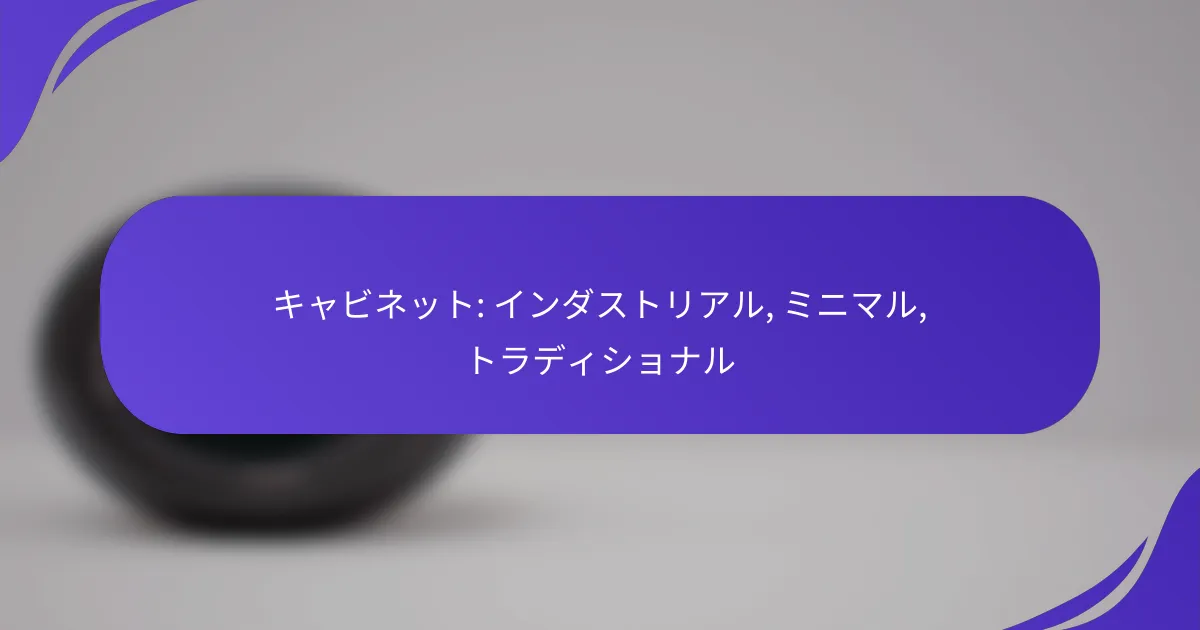 キャビネットには主にインダストリアル、ミニマル、トラディショナルの3種類があり、それぞれ独自のデザインと機能性を持っています。選ぶ際にはサイズや耐久性、価格などを考慮することで、自分のニーズに最適なキャビネットを見つけることができます。 キャビネットの種類は何ですか? キャビネットには主にインダストリアル、ミニマル、トラディショナルの3種類があります。それぞれのスタイルは、デザインや機能性において異なる特徴を持っています。 インダストリアルキャビネットの特徴 インダストリアルキャビネットは、金属や木材を使用した頑丈なデザインが特徴です。工業的な雰囲気を持ち、無骨な美しさが魅力です。 このスタイルは、オープンな構造や大胆なラインを持つことが多く、実用性を重視しています。例えば、工場や倉庫のような空間に適しています。 ミニマルキャビネットのデザイン要素 ミニマルキャビネットは、シンプルさと機能性を重視したデザインが特徴です。余計な装飾を排除し、クリーンなラインと中立的な色合いが一般的です。 このスタイルは、現代的なインテリアに調和し、空間を広く見せる効果があります。収納力を保ちながらも、視覚的な圧迫感を与えません。 トラディショナルキャビネットの伝統的なスタイル トラディショナルキャビネットは、クラシックなデザインと高品質な素材が特徴です。木材の温かみや細かい彫刻が施され、歴史的な雰囲気を醸し出します。 このスタイルは、伝統的な家やオフィスに適しており、重厚感があります。特に、アンティーク家具との相性が良いです。 各種キャビネットの用途 インダストリアルキャビネットは、オフィスや工場での収納に適しています。ミニマルキャビネットは、現代的なリビングや寝室での使用が一般的です。 トラディショナルキャビネットは、ダイニングルームや書斎に置かれることが多く、装飾的な役割も果たします。 素材の違いとその影響 … キャビネット: インダストリアル, ミニマル, トラディショナルRead more