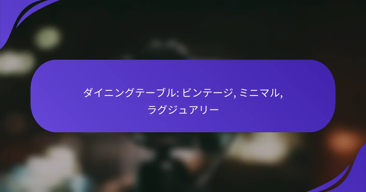 ダイニングテーブルを選ぶ際は、スタイル、サイズ、素材を考慮することが重要です。ビンテージ、ミニマル、ラグジュアリーの各スタイルに応じた特徴を理解することで、理想的なテーブルを見つけやすくなります。